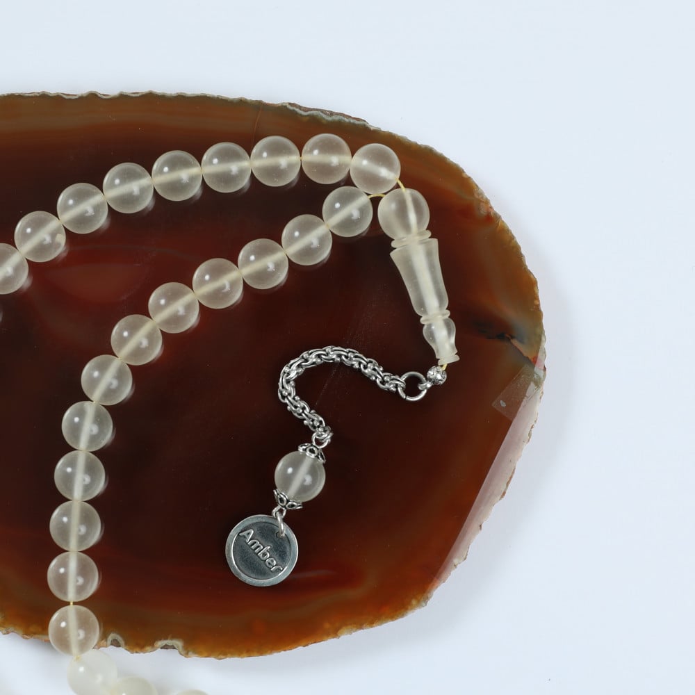 يقدم لكم امبر سبحه البكلايت المضيئة في الظلام (بعد تعرضها للشمس) باللون السكري ومع اضافة الفضة.