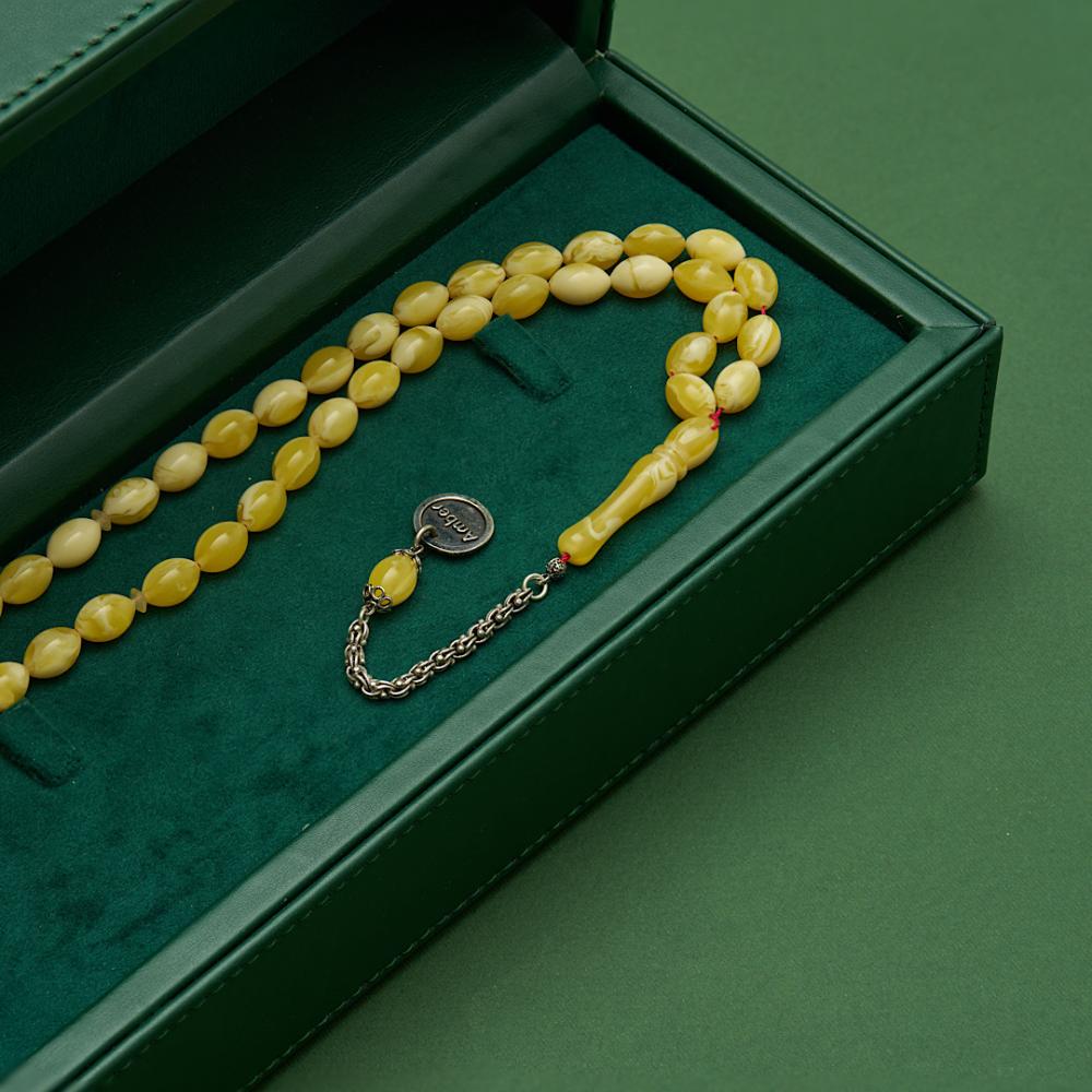 كهرمان ضغط لون ليموني بقصة زيتونيه مع سلسال ولوقو فضة.
