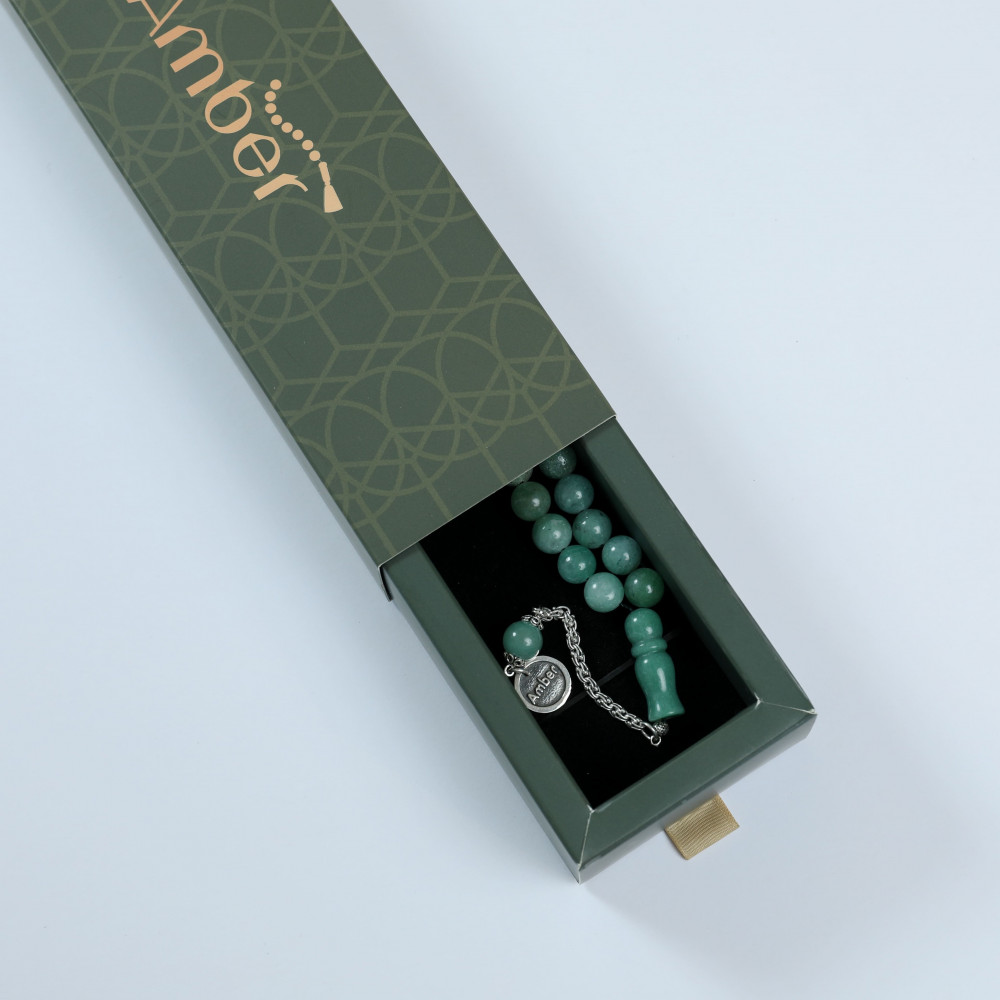 يقدم امبر لكم سبحه من الحجر الصناعي باللون الأخضر المميز.